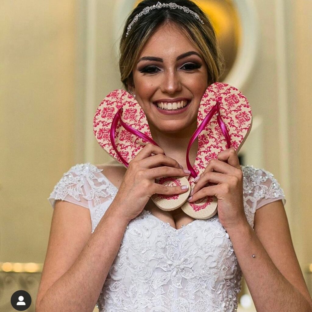 Chinelos personalizados são os mais utilizados, principalmente durante a festa.