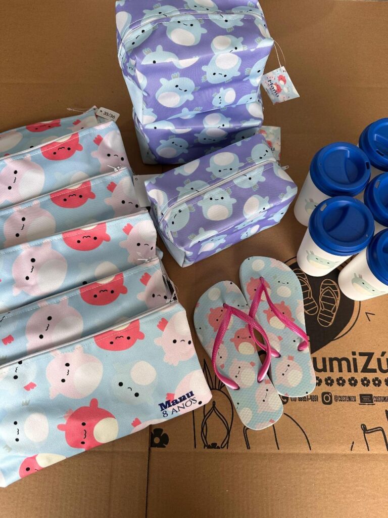 Itens úteis são muito mais valorizados pelos convidados porque continuam sendo utilizados depois da festa. Produtos como chinelos personalizados, kits e acessórios personalizados se tornaram muito populares exatamente por esse motivo.